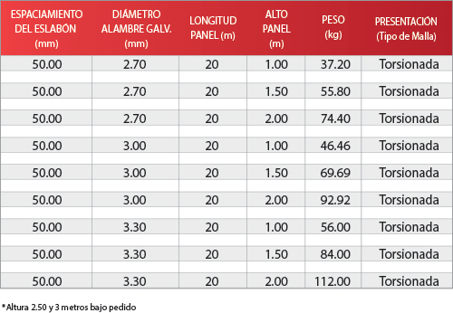Elaborada con alambre Triple Galvanizado que forma celdas o eslabones entrelazados con terminaciones/puntas torsionadas.
